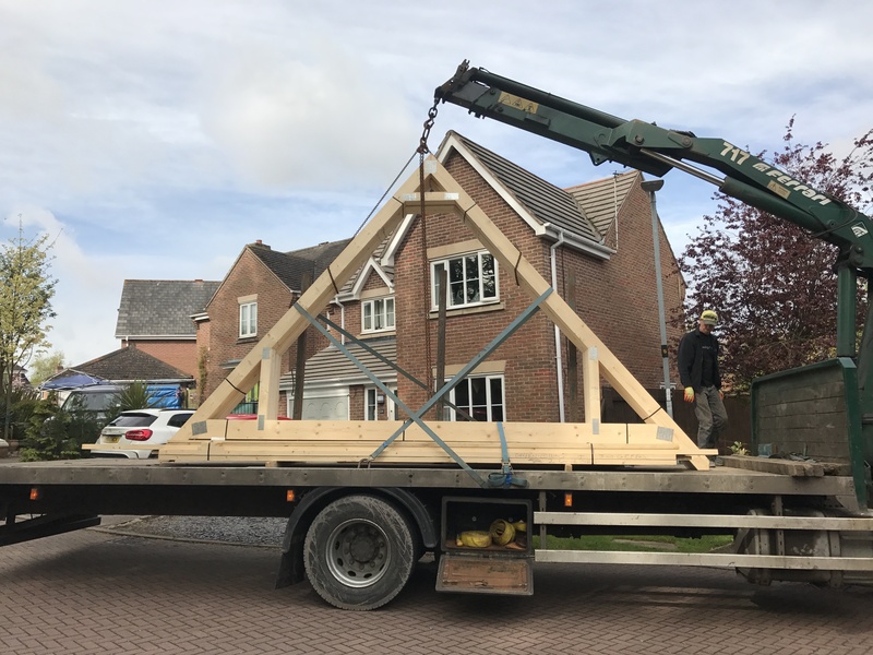 The attic roof trusses arrived today for the garage conversion & extension we are in the process of completing. The client suggested we create extra living space by putting in a mezzanine floor over the garage conversion & extension, the existing property has very steep roof profiles and lends itself well to this design. Great use of space and turning out much larger than anticipated. Click the 'view more' button to see what I mean.