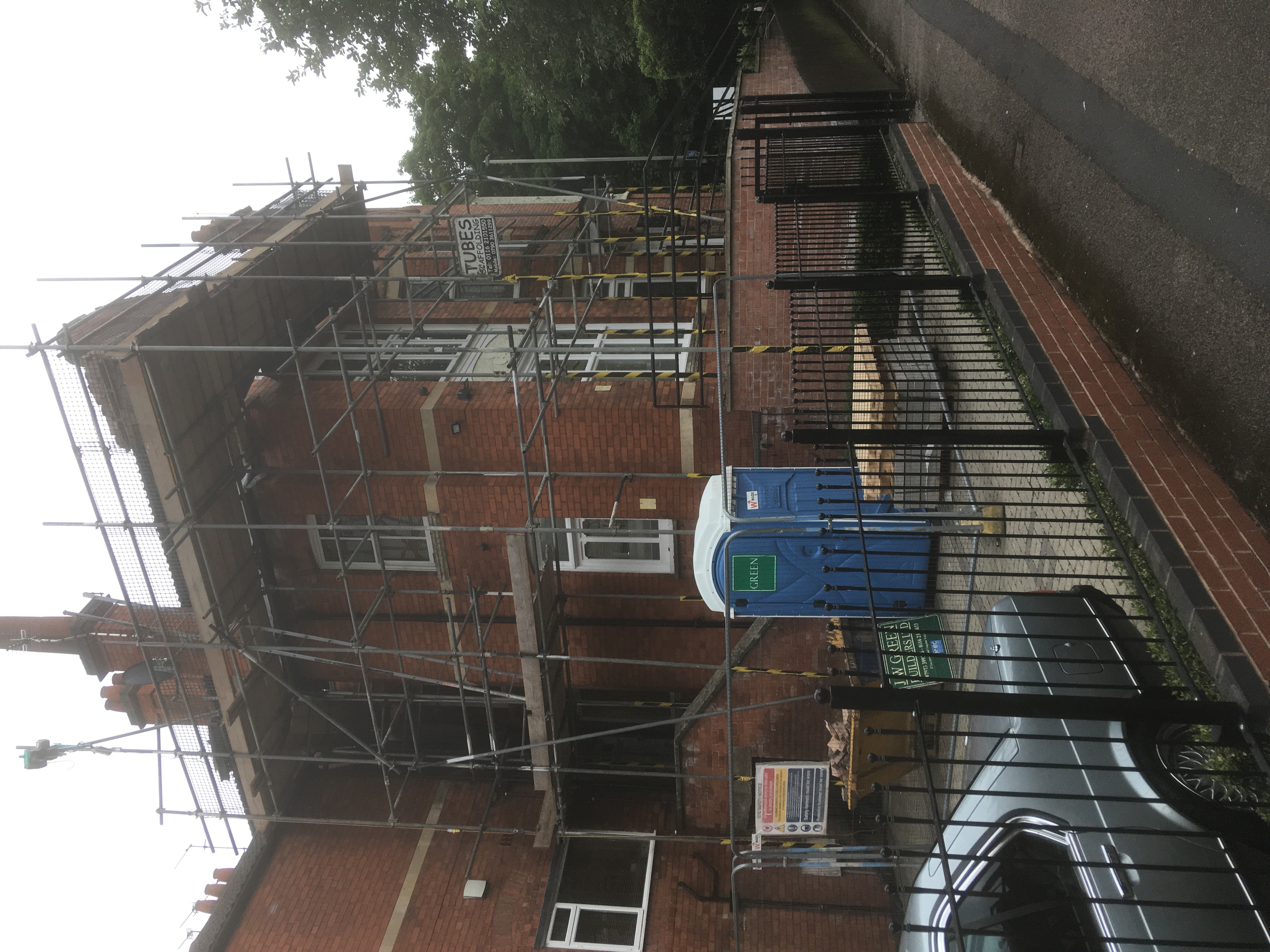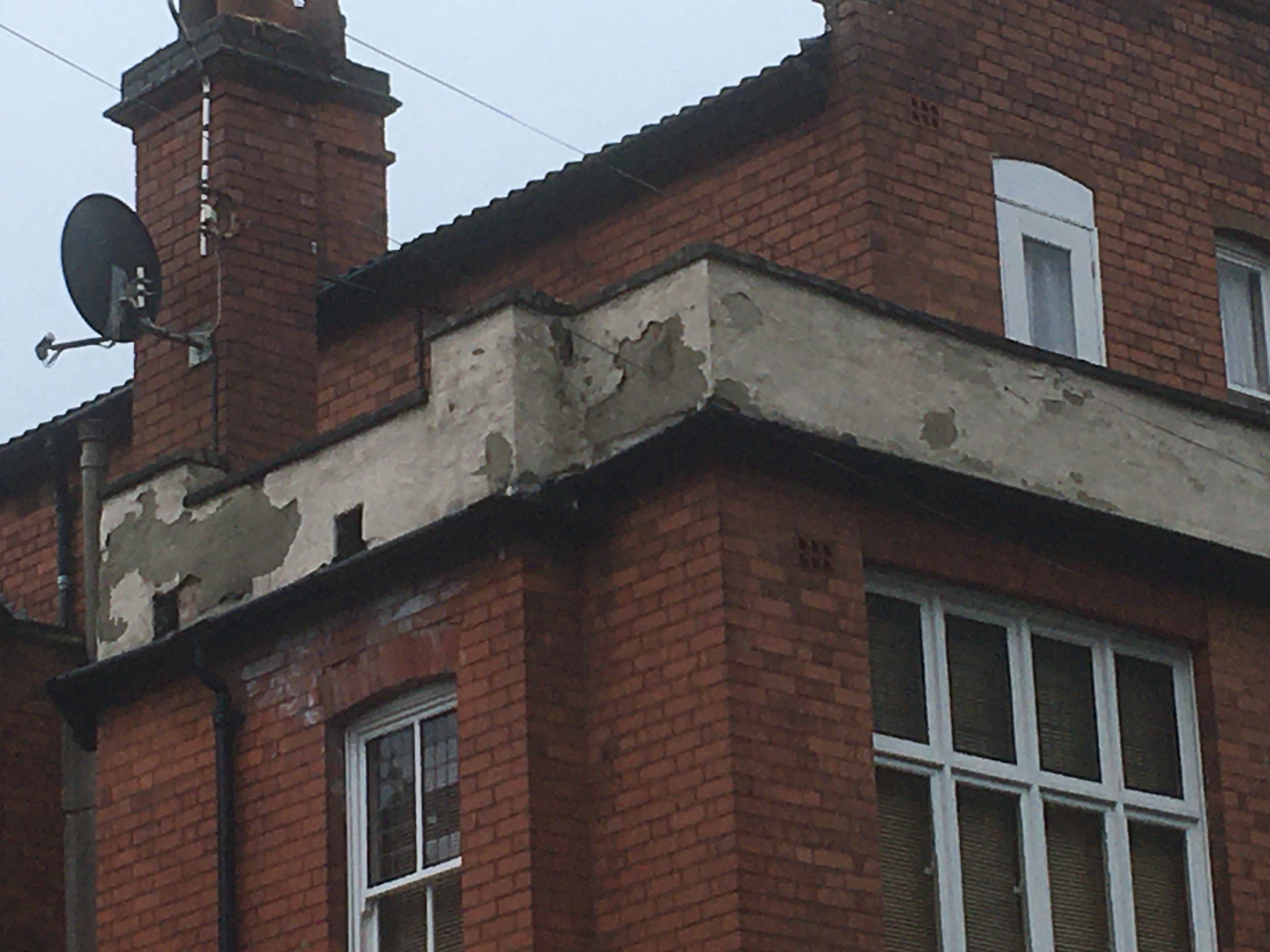 Back at St Johns Dental Practice, we are carrying out more remedial works, this time rebuilding parapet walls to the rear terrace and renewing the standing area, all done with matching skills used when first built, and all done with utmost care whilst working over a very busy surgery entrance. This job was so high we needed a crane to safely take down worn materials and lift 1,350 bricks.
