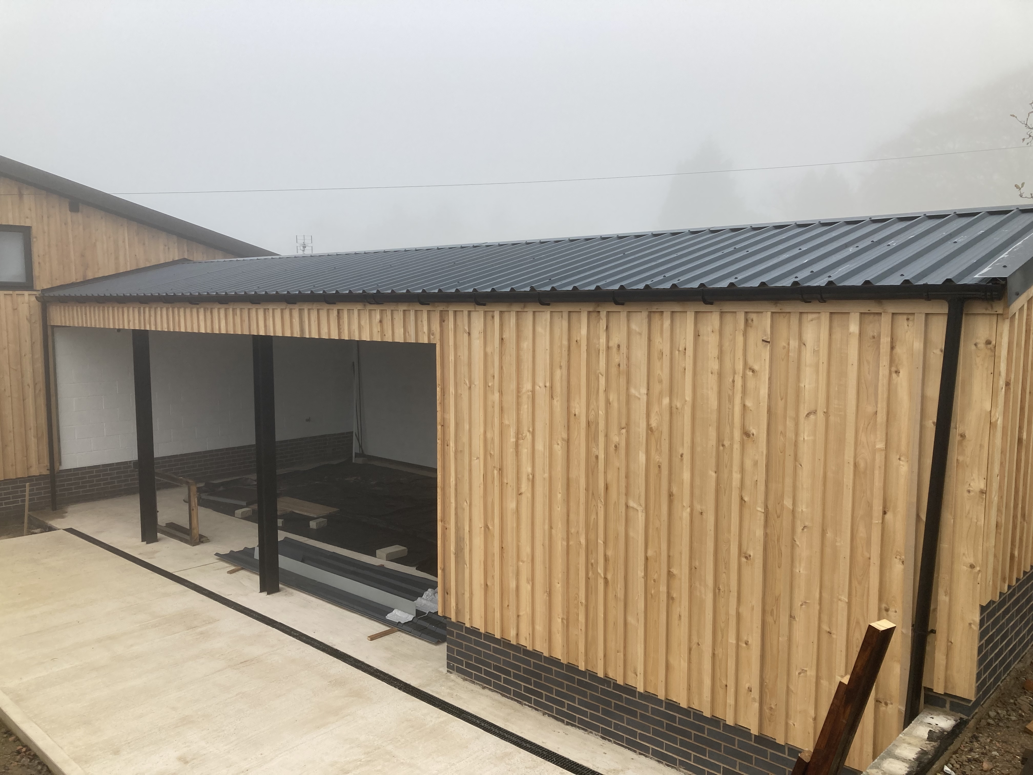 Complete with Zinc Raised Seam Roof Covering, Cedar Wood External Cladding over a Blue Brick Plinth.
